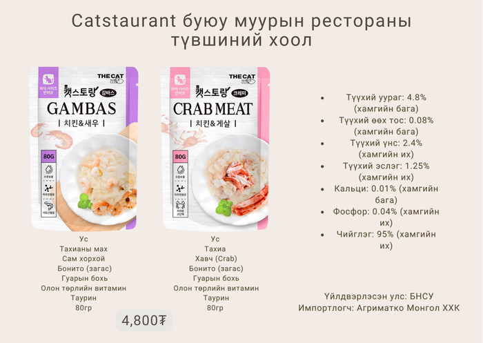 Retort Cat Pouch Chicken + CRAB/SHRIMP 80g - муурын нойтон хоол (ХАВЧ/Сам хорхойн Махтай)